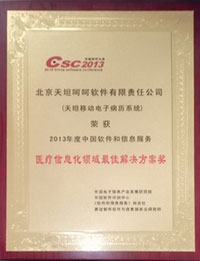 醫(yī)療信息化領(lǐng)域最佳解決方案獎